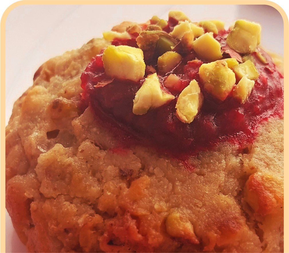 La Cookie de masa de pistacho con su rellena de frambuesa es una auténtica explosión de sabores, un verdadero "capricho" diario sin remordimiento alguno al ser sin gluten, vegana, sin azúcar y elaborada artesanalmente.